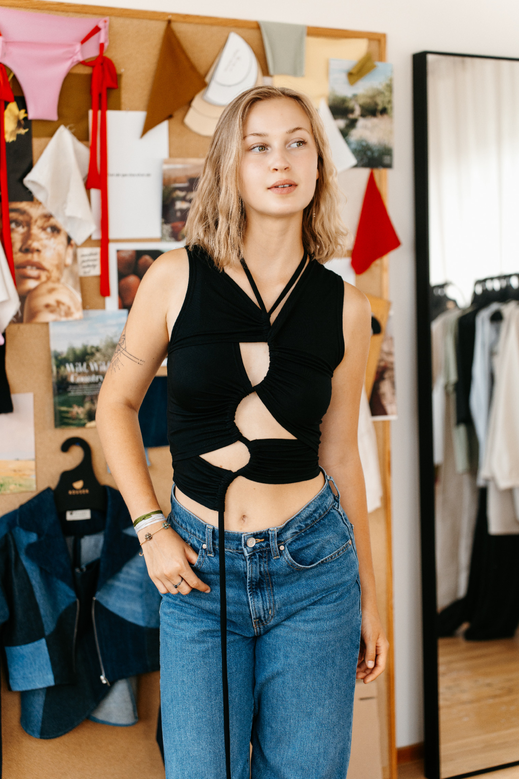 Zero waste udržitelná výroba, top je ušitý z přebývajících kusů látky, které používám pro výrobu ostatních modelů z tencelu.
